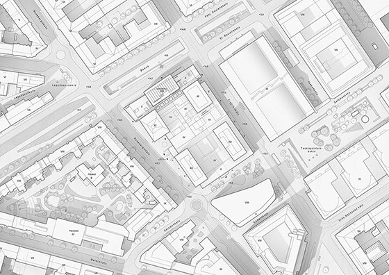 The City of Helsinki commisioned four architecture offices to submit proposals for the extension and development of the historic Autotalo quarter in Kamppi. The challenge was to accommodate an adequate amount of new office and commercial premises on a limited site, while considering the prominence of the existing quarter and the scale of the surrounding urban context.