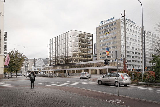 The existing Autotalo quarter consists of four towers connected by a low pedestal. The original ensemble was distinctly modern in its time, with an intention of developing an urban ideal for the downtown of Helsinki, in Kamppi. The international modernism represented by the quarter is characterised by rationalism, a clear juxtaposition of different parts of the whole and a reduced set of architectural gestures.