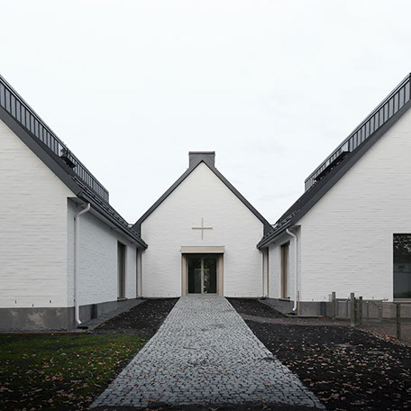 The language of the facades of the extension carry forward the lively brickwork and white rendering of the existing church's facades. The all white interior of the extension adds airiness and light to the new spaces and reinforces the spatial sequence of the assembly.