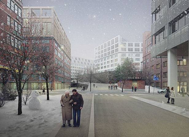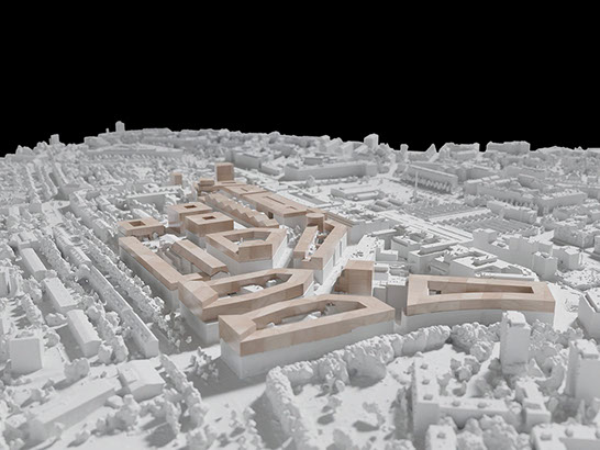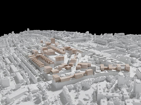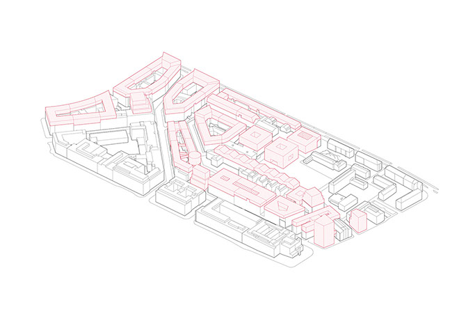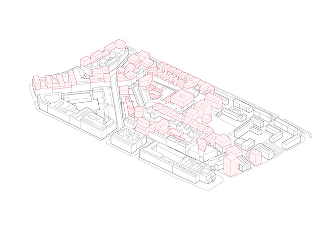 The proposed overall volume of the infill projects was extensive and ambitions, as per the goals of the City. Nevertheless, the character of the development achieved calmness and respect for existing situation. While the new architecture proposed clear contrast to its historic situation, it sought to utilise themes adopted from its built context. The overall character of the proposed infill strategy emphasised horizontality within the area and its skyline, with no single buildings forming obtrusive vertical dominants within the area. The proposed design emphasised the urban quality of the pedestrian areas and their experienced scale, seeking also to enrich the area with new public outdoor spaces and adding pedestrian connections to places that currently lacked those.